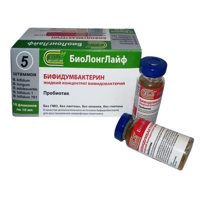 Содержит комплекс живых культур бифидобактерий, а также их метоболиты