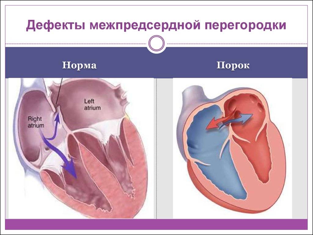 Иногда дефект между предсердиями сочетается с другими, более серьезными аномалиями сердца.