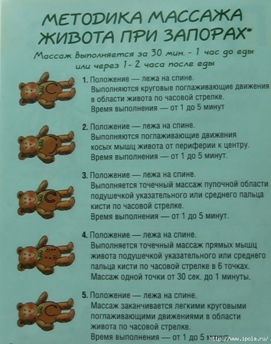 Теплая ванна может помочь вашему ребенку расслабиться, и стул будет легче отводиться.После того, как ваш ребенок расслабится в ванне, вы также можете помассировать ему живот (см. Выше).