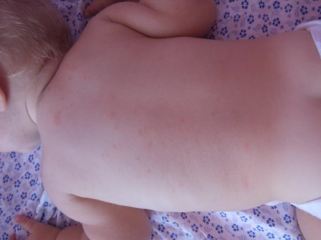 Когда мелкопузырчатые участки уже имеют области сливания в крупные узлы, то следует внимательно следить за тем, чтобы младенец не расчесывал и не травмировал зудящие участки. Для этого нужно коротко стричь ему ногти и надевать на ручки царапки.