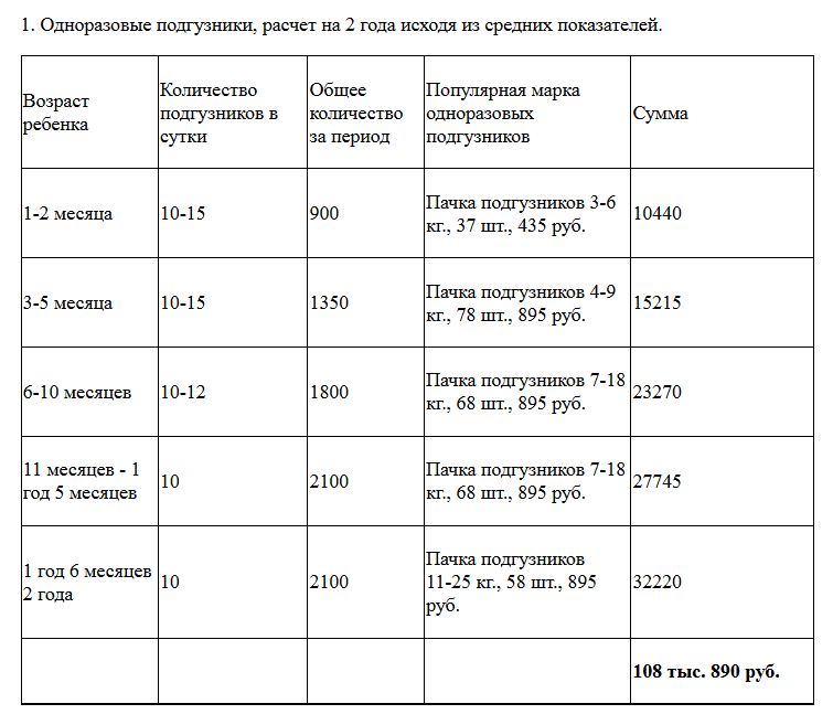 Невозможно указать точный расход памперсов в день, ведь все малыши развиваются по-разному и имеют свои индивидуальные особенности. Указанные цифры являются лишь среднестатистическими и могут послужить для приблизительного подсчета потребностей в подгузниках вашего ребенка.