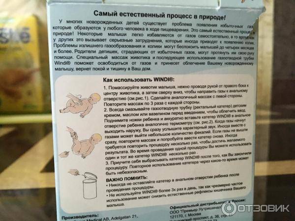 Газоотводную трубочку WINDI® необходимо применять в сочетании с массажем животика (см. руководство на упаковке), это поможет достичь максимального результата.