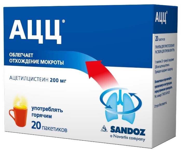 — Ацетилцистеин (АЦЦ, ацестин, мукобене, мукомикс, муконекс, флуимуцил, экзомюк 200)