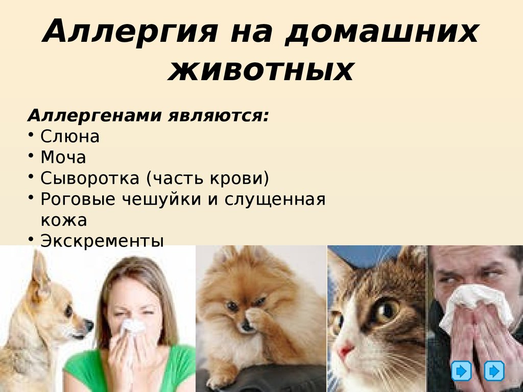 Аллергия на домашних животных — это иммунная реакция на шерсть животных (чешуйки кожи), слюну, мочу или фекалии.(Шерсть или шерсть животных сами по себе не являются аллергеном, но могут задерживать пыльцу, пыль, плесень и другие аллергены.) Когда ребенок с аллергией на домашних животных дышит перхотью или контактирует со слюной или пометом, его иммунная система приходит в состояние боевой готовности и выделяет гистамин и более 40 других химических веществ для борьбы с аллергеном.
