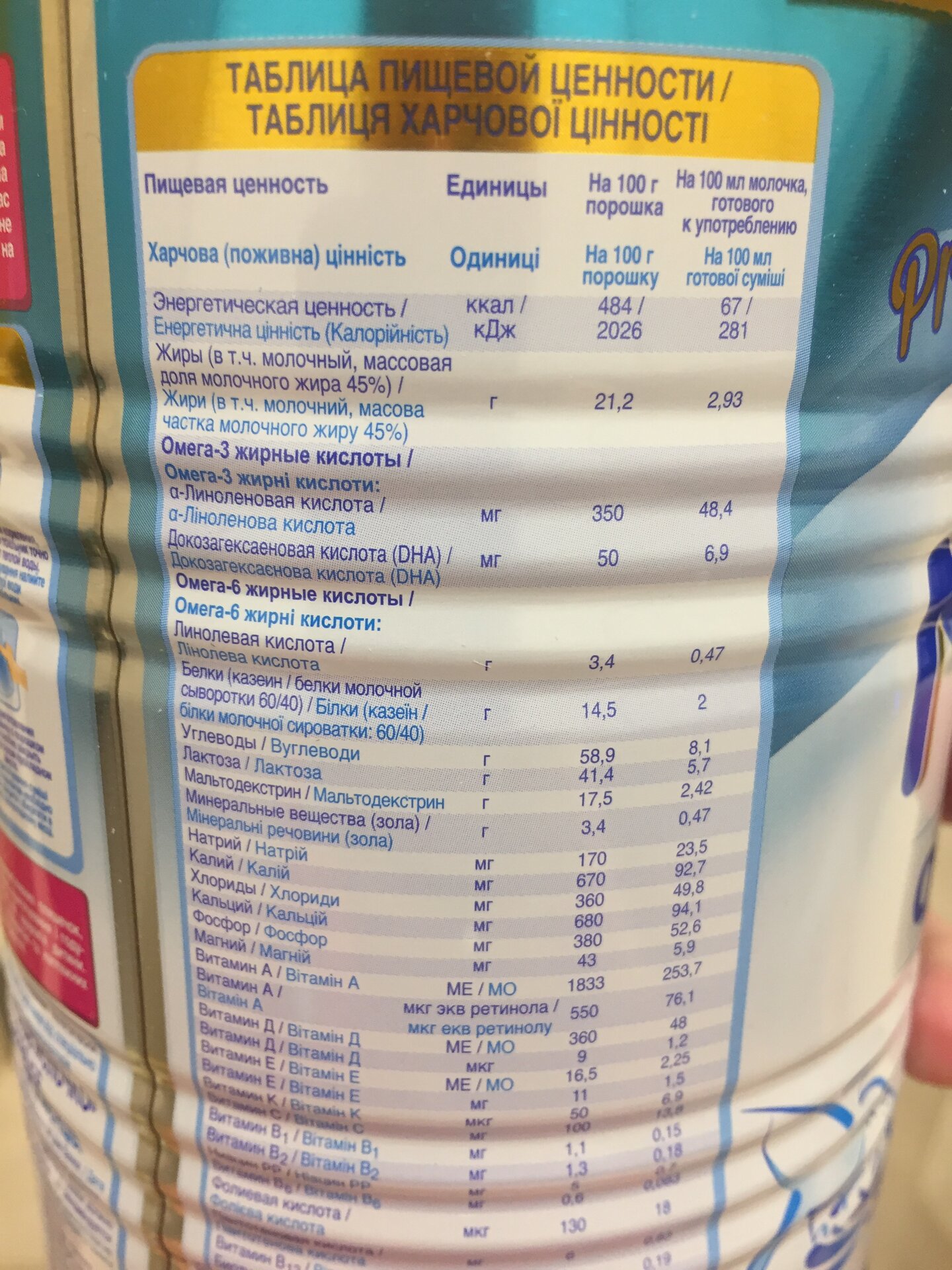 Пищевая ценность и состав детских смесей