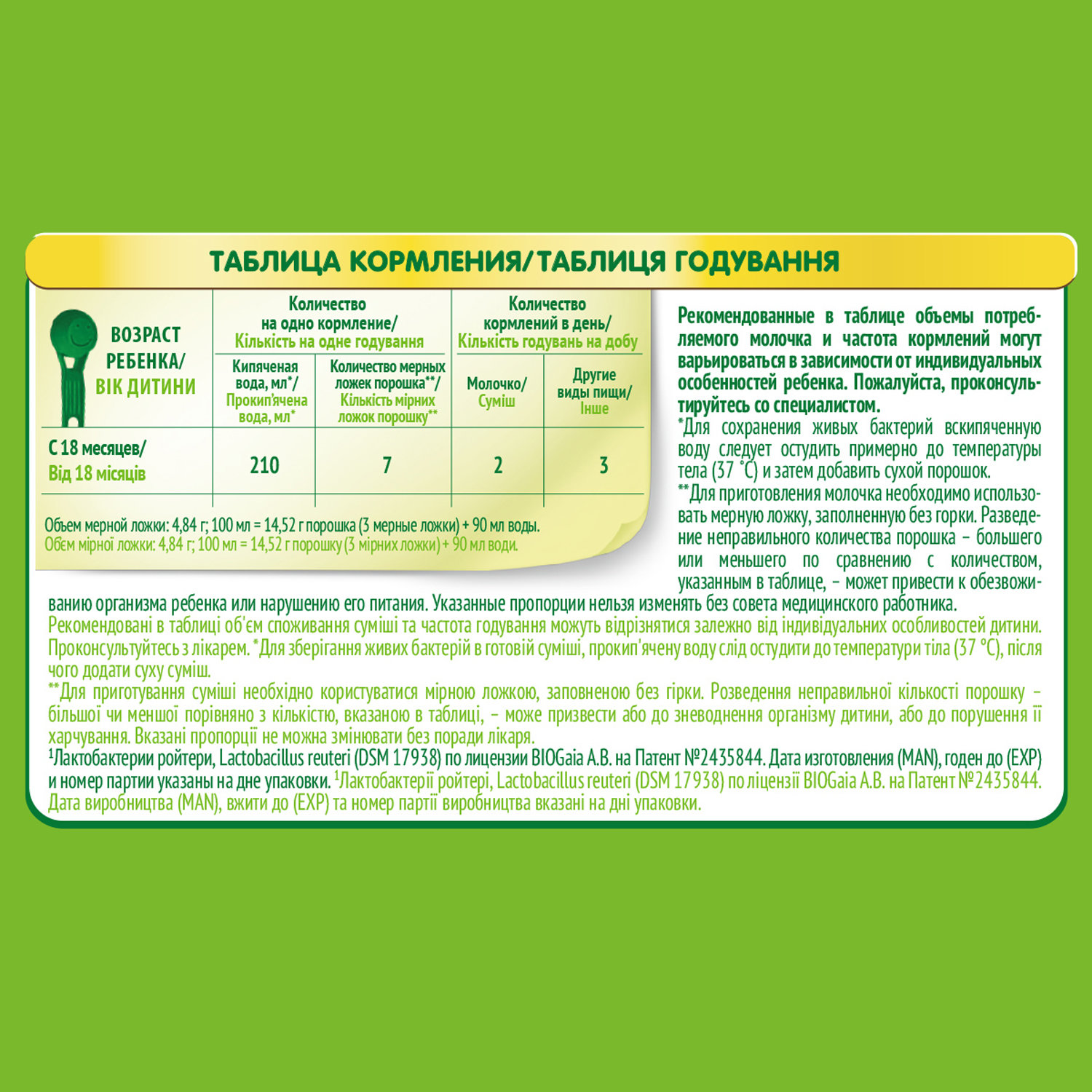 На упаковке обязательно должна быть указана калорийность продукта и такой показатель, как осмоляльность – означает концентрацию в смеси белков и солей. Чтобы нагрузка на незрелые почки ребенка была небольшой, показатель осмоляльности не должен превышать значение 320 мОсм/кг.