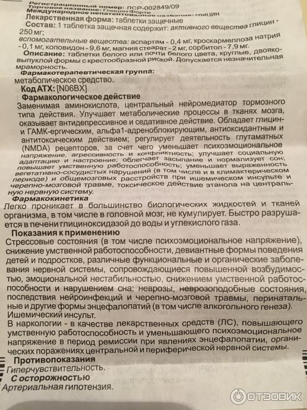 Гліцин ✔️ інструкція, показання до застосування, дозування, склад, форма випуску