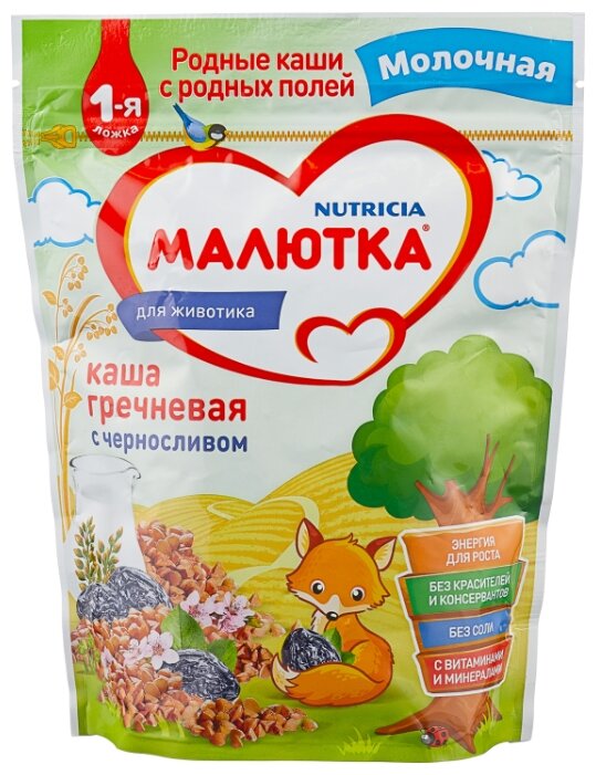 Малютка каши – родные каши с родных полей! В основе наших рецептов – отборные злаки с российских полей Алтая, Ставрополья, Краснодара, выращенные и отобранные по высоким стандартам качества. Создавая наши каши, специалисты компании Nutricia вдохновлялись природой регионов России. Каждая порция содержит необходимые для развития белки, витамины и минералы, а также углеводы, которые дают малышу энергию для роста. Каши Малютка – вся сила России для вкусного и высококачественного прикорма вашего малыша. — Родные каши с родных полей; — Энергия для роста; — Без консервантов и красителей; — Без соли; — С витаминами и минералами; — Для животика. Каша молочная сухая быстрорастворимая гречневая с черносливом Малютка®, для питания детей с 4 месяцев, согласно требованиям норм законодательства России и Республики Казахстан.
