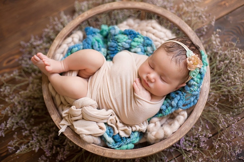 Лучшее время для проведения фотосессии новорожденных – это первые 6 -10 дней жизни ребёночка. В этом возрасте малыши крепко и сладко спят, и хорошо укладываются в разные позы, похожие на те, в которых они были у мамы в животике.