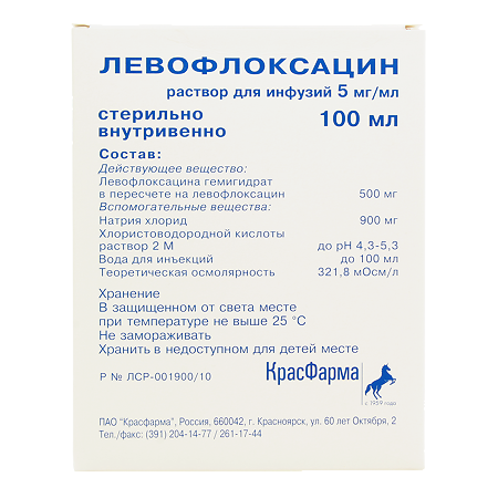 - Левофлоксацин также выпускается в виде раствора для приема внутрь и глазных капель. Кроме того, он выпускается в форме для внутривенного введения (IV), которую назначает только поставщик медицинских услуг.
