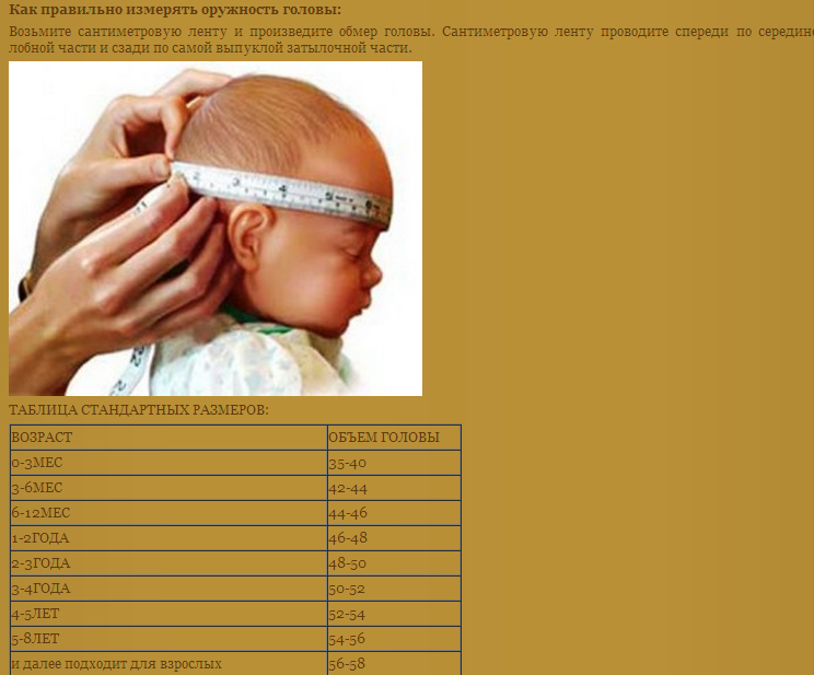 Окружность головы — от 33 до 35 см