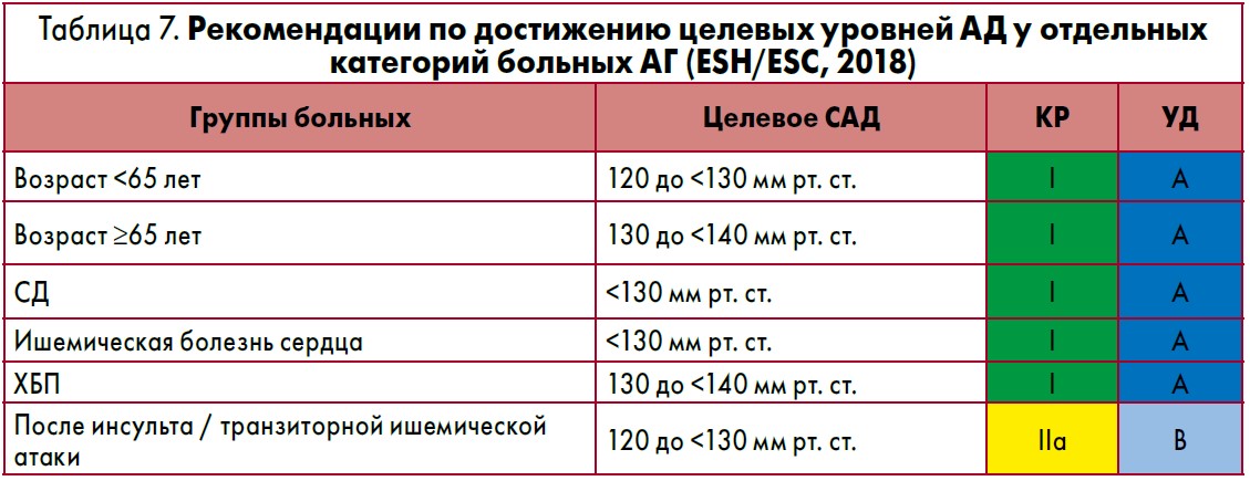 - ≥65 лет: целевое АД <140/90 мм рт. ст. при хорошей переносимости.