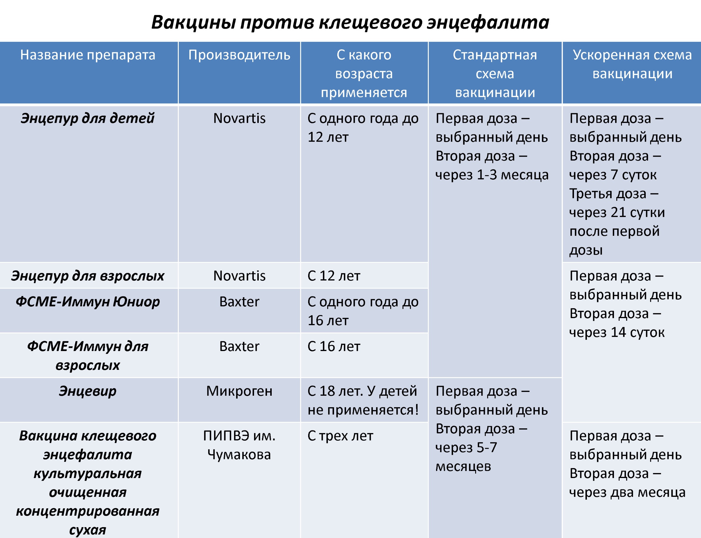 Обратите внимание, что существует ускоренный график, а также график для детей до 16 лет и взрослых старше 60 лет.