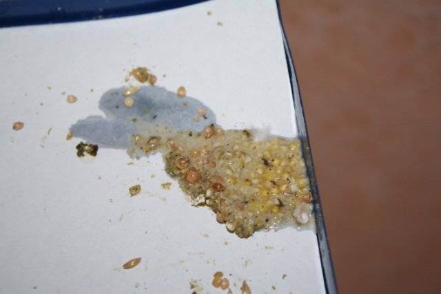 🔸Непереваренные кусочки пищи — результат ускоренной работы желудочно-кишечного кишечного тракта и неполной обработки пищевого продукта, обратите внимание на их состав (мясо/овощи), особенно тревожно, если вы увидели продукты питания, употребленные в течение дня.