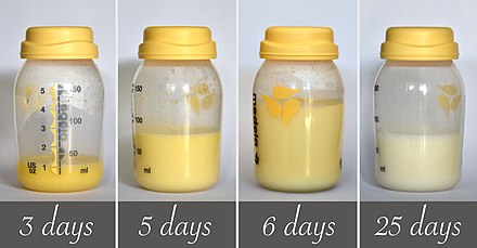 Проходит несколько дней (индивидуально у каждой матери) и молозиво постепенно переходит в привычное молоко белого цвета. Ребенок растет, и меняется состав женского молока, соответствуя каждому периоду роста ребенка.